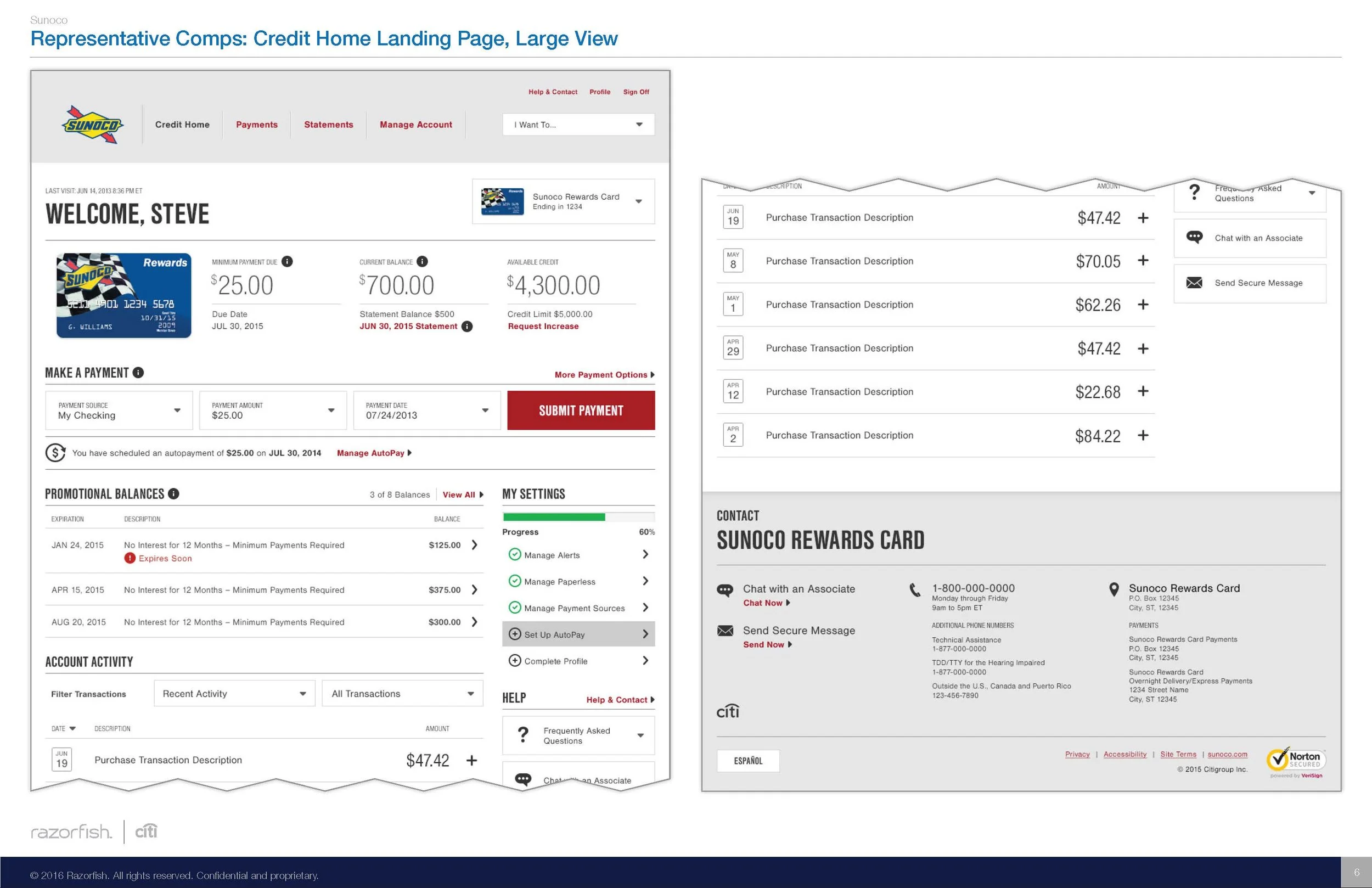 The design team consisted of 5 designers; an Executive Creative Director, that handled the client relationships for the overall Citi account, a Creative Director, Myself as the Design Lead, and two more junior designers. The rest of the teams consisted of a Project Manager, Lead Developer, and a revolving team of offshore developers based in the Maldives. As the Design Lead, I worked alongside the entire team to ensure the project's goals were met successfully and to the best of our abilities.