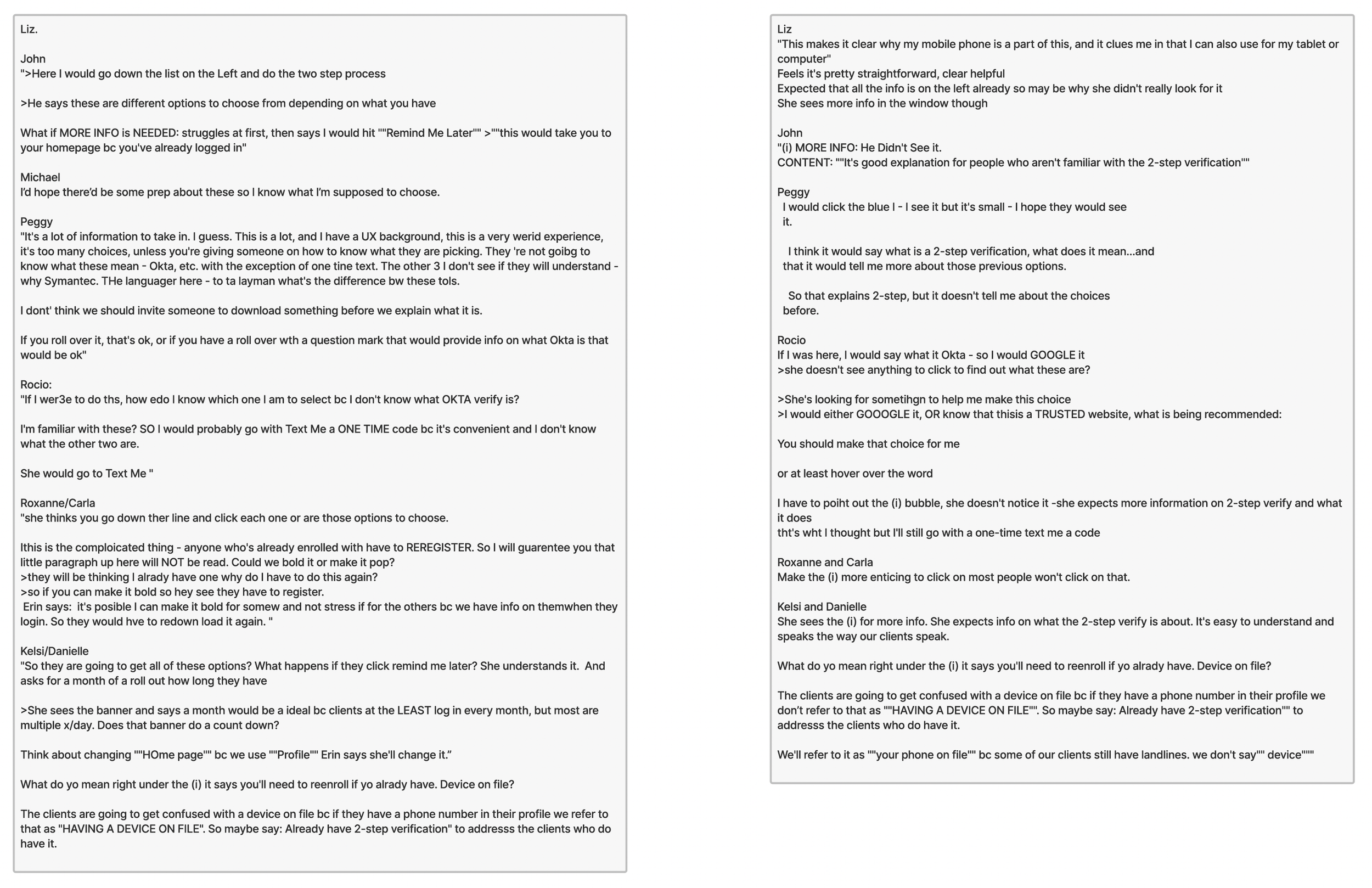 I was able to run multiple rounds of testing using an end-end clickable prototype. Users were guided through the enrollment and activation process by a moderator and interviewed before, during, and upon completion about their feelings around the language, design, and personal expectations of the MFA process.