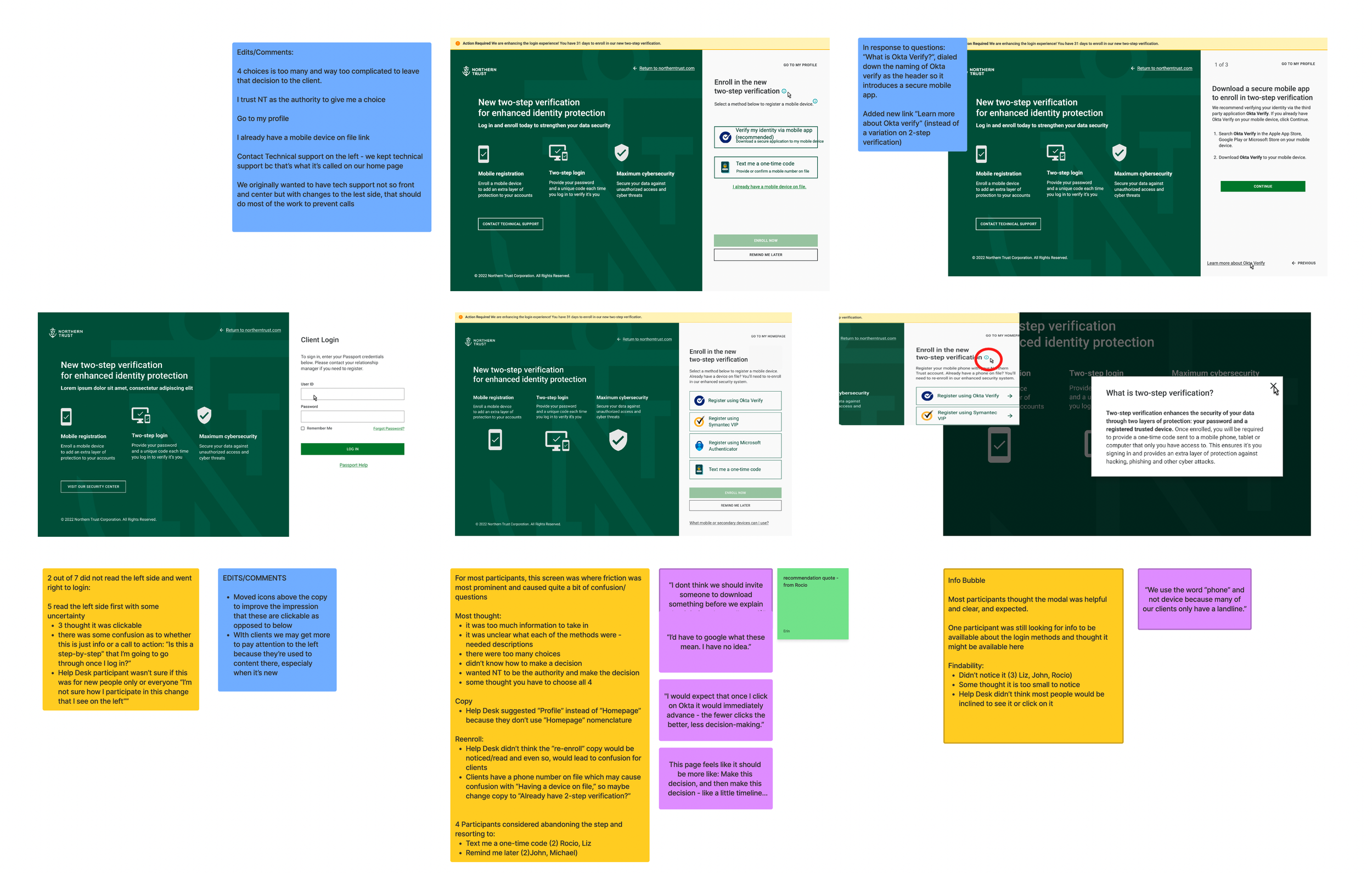 I kicked off the project by starting with comparative research to see how other financial institutions were handling their two-step verification, and what Northern Trust’s customers’ expectations might be after being notified that multi-factor authentication would be required to access their accounts.