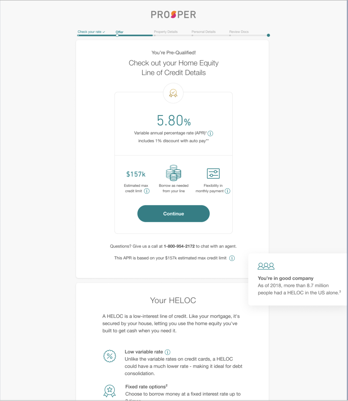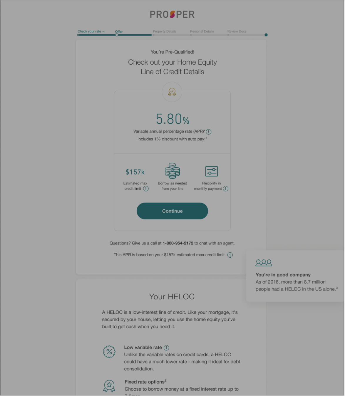 The user lands on the HELOC offer page to be redesigned.