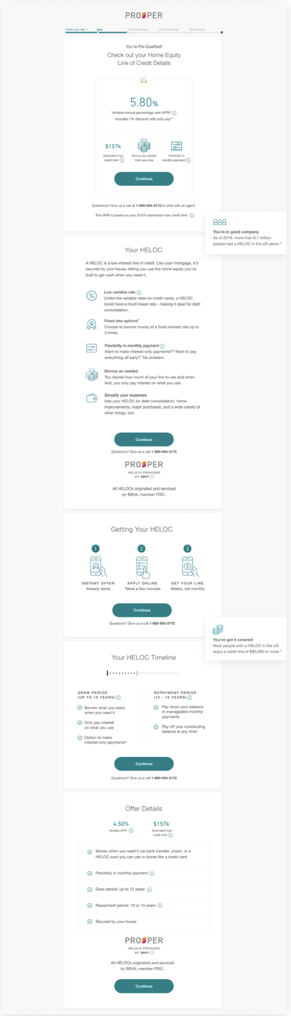 My assignment was to redesign the existing HELOC (Home Equity Line of Credit) application and improve conversion rates through user education and transparency. I was the design lead on this project with access to the company’s dedicated researcher and the Executive Creative Director for feedback and in-sites.
